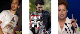 Não dá pra deixar de notar na logomarca em forma de pirâmide no casos de família, que mais tarde foi acentuado o formato piramidal, abaixo também temos Junior lima usando uma blusa com o olho de horus e o pentagrama invertido, Bruno gagliasso usando uma camisa com a estampa de aleyster crowley e Dilma fazendo gesto satânico.